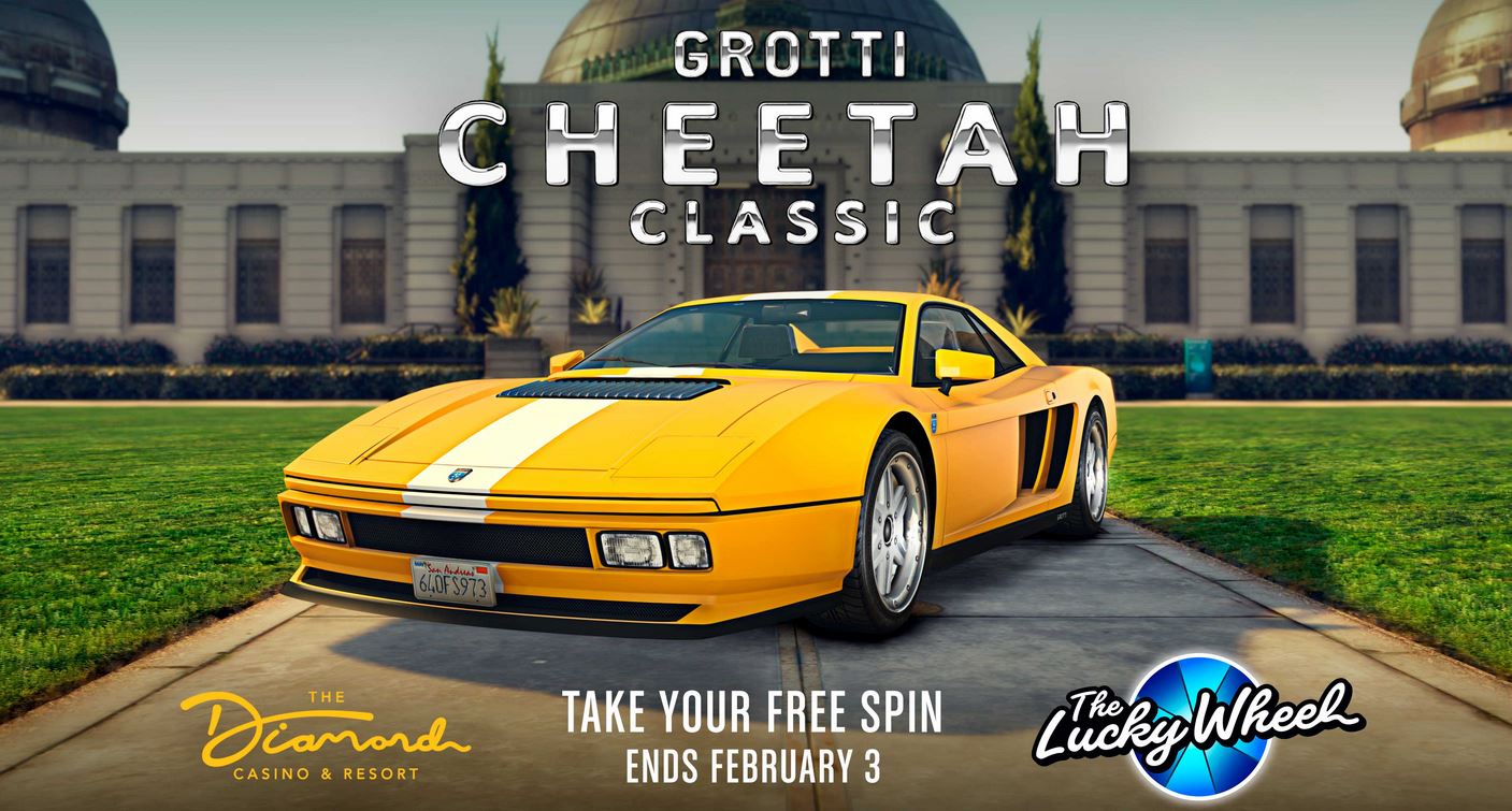 Cette semaine du 28 janvier c'est donc la voiture Grotti Cheetah Classic qui est mise en avant sur le podium du casino de Los Santos. Qui aura la chance de repartir avec la voiture ?