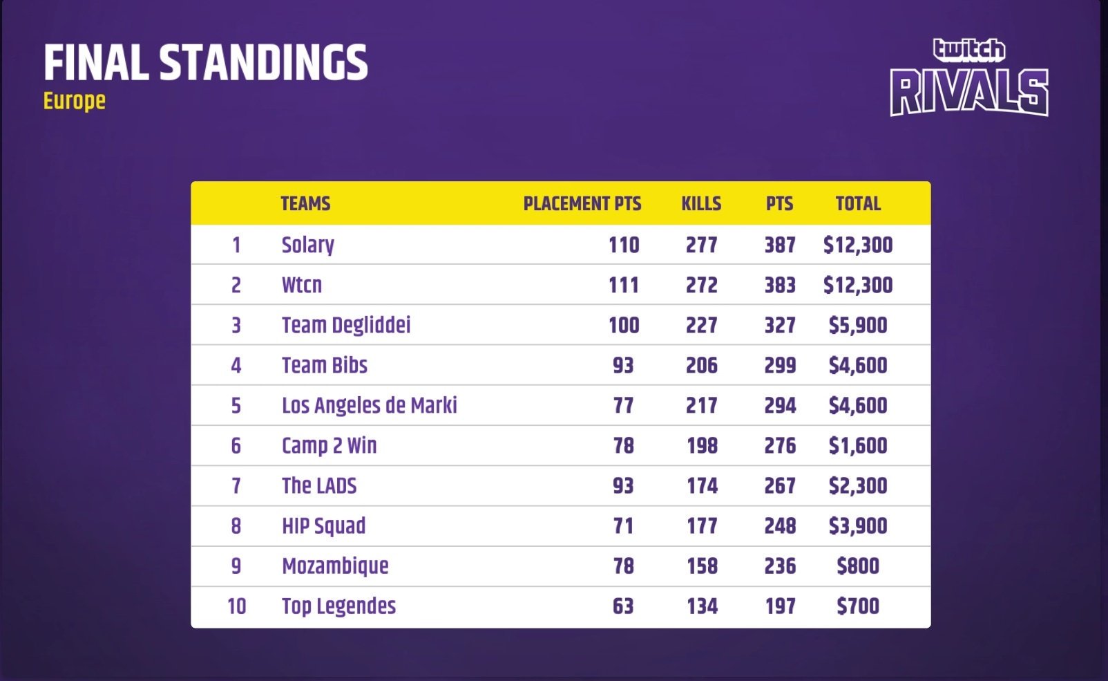 Une semaine après la victoire de l'équipe Gotaga au Twitch Rivals sur Apex Legends, c'est au tour de Solary de s'imposer ce mardi 19 février dans la compétition européenne !