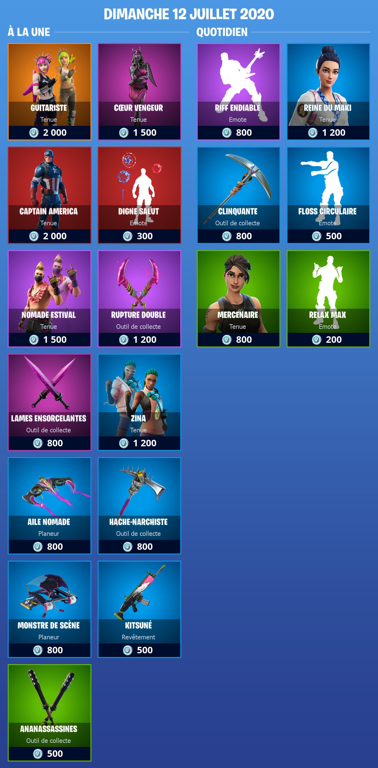 Boutique Fortnite 12 juillet 2020 avec Captain America
