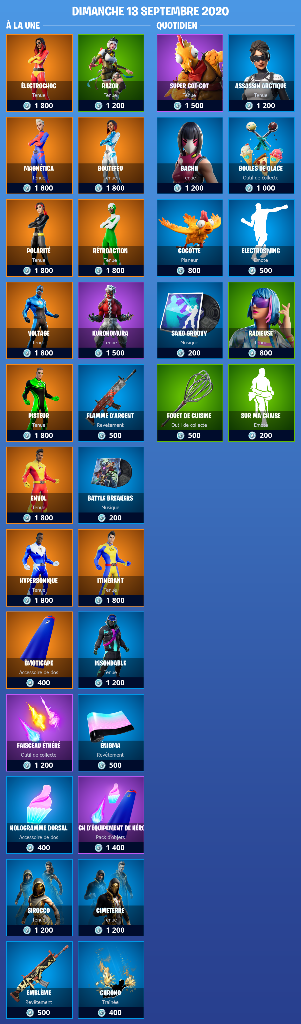Boutique Fortnite 13 septembre 2020