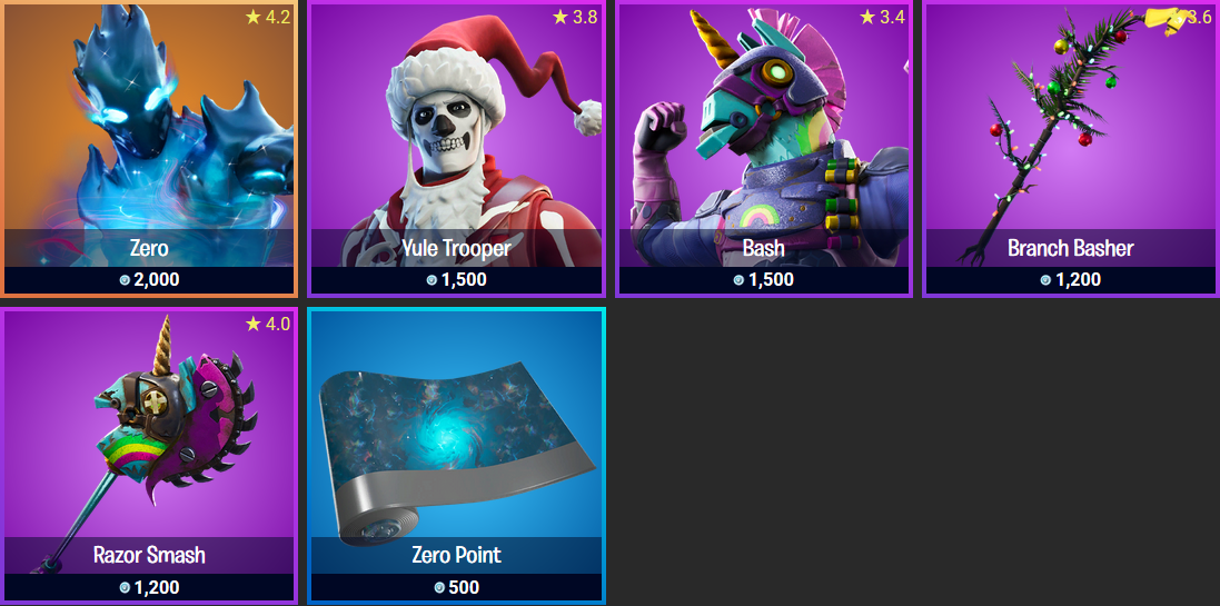 Vous pouvez retrouver dans cette boutique du 16 décembre 2019 tout un tas de skins. Faites votre choix car certains skins pourraient ne pas revenir avant plusieurs semaines, mois, années... De nombreux choix de cosmétiques s'offrent à vous !