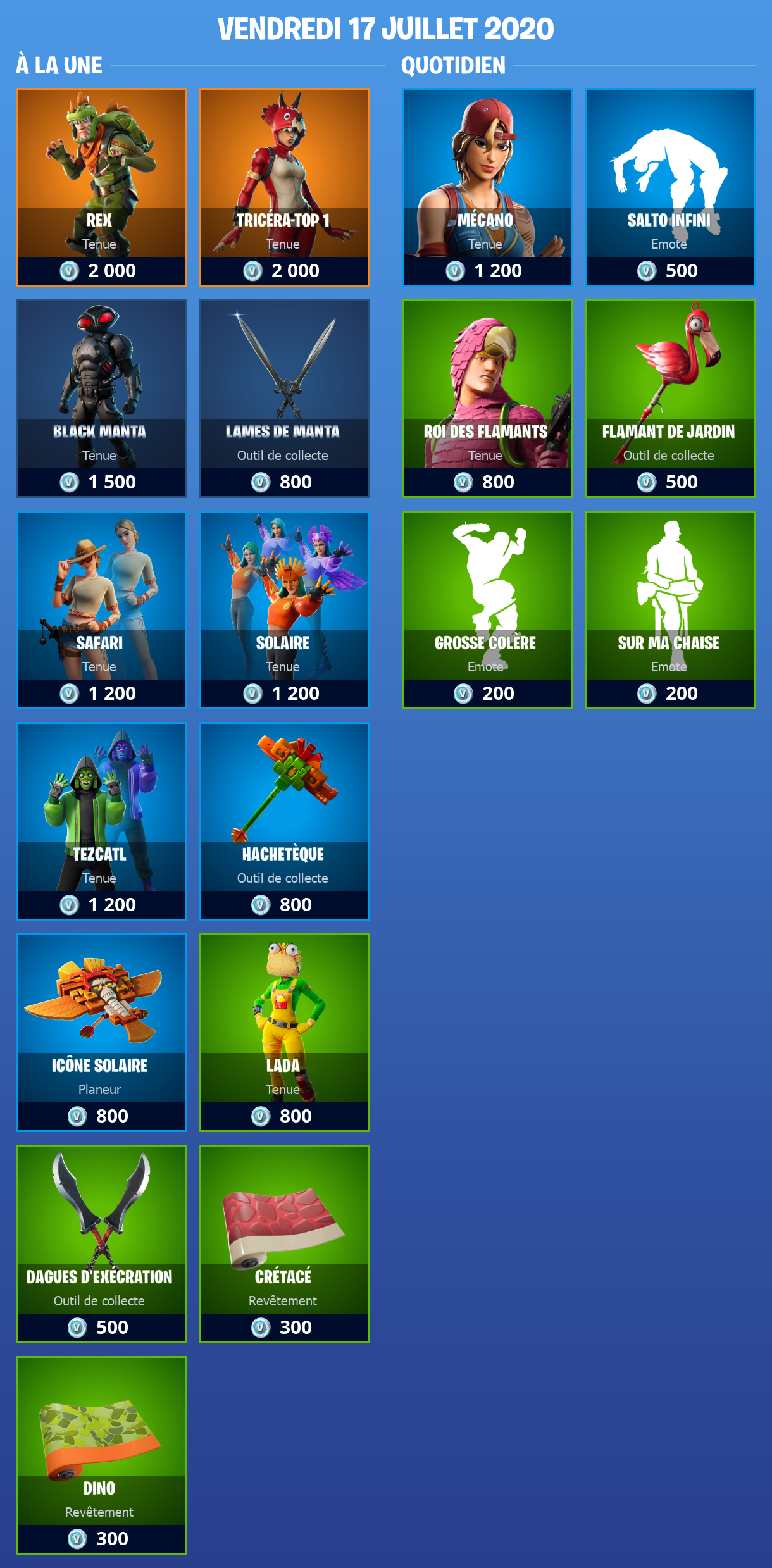 Boutique Fortnite 17 juillet 2020 avec Black Manta