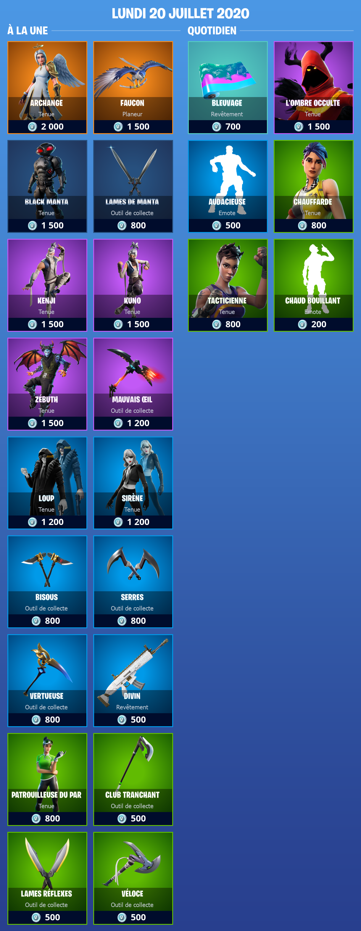 Boutique Fortnite 20 juillet 2020 avec Black Manta