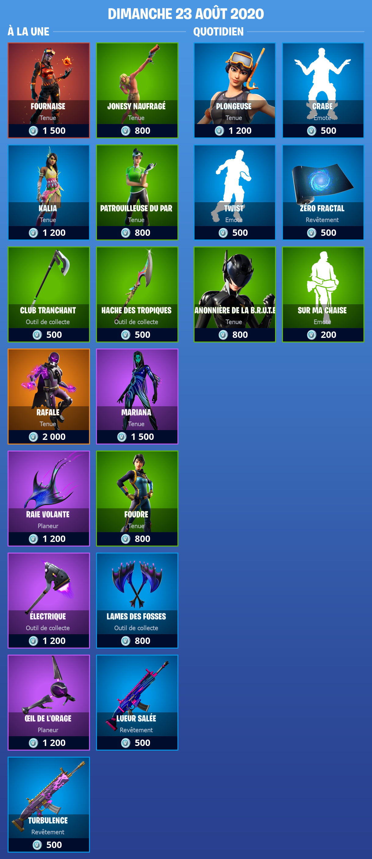 Boutique Fortnite 23 août 2020