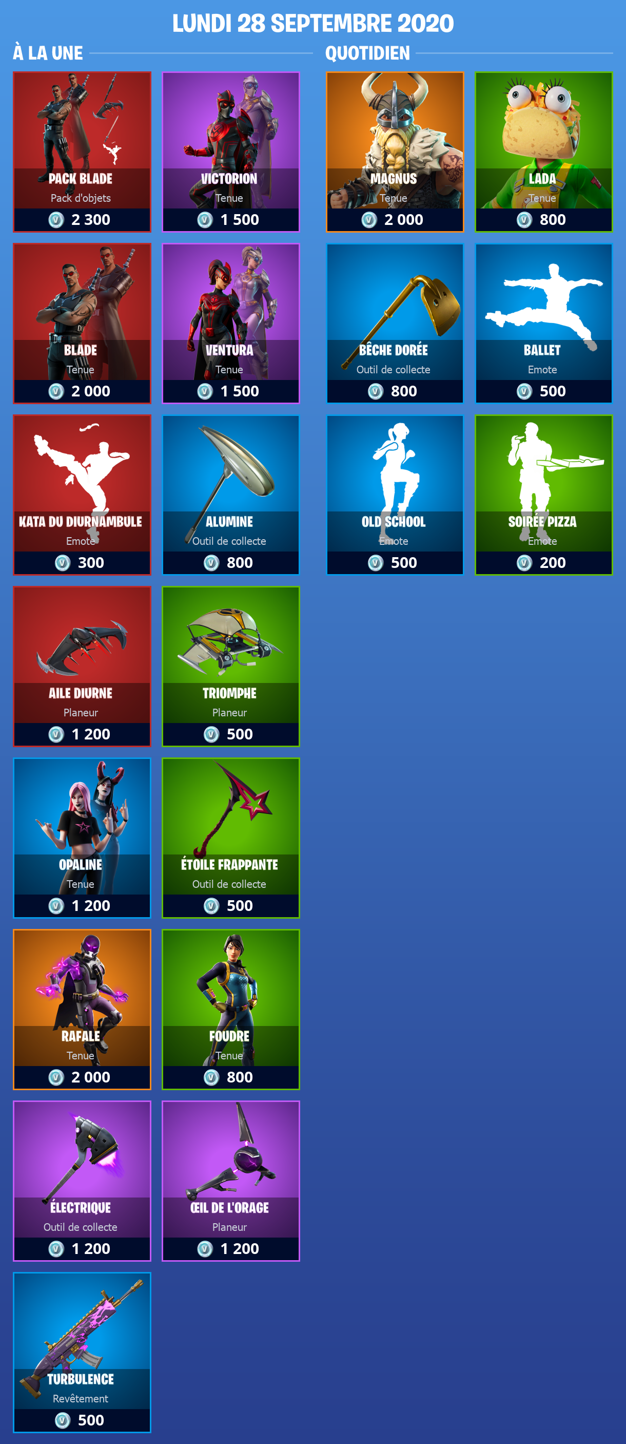 Boutique Fortnite 28 septembre 2020