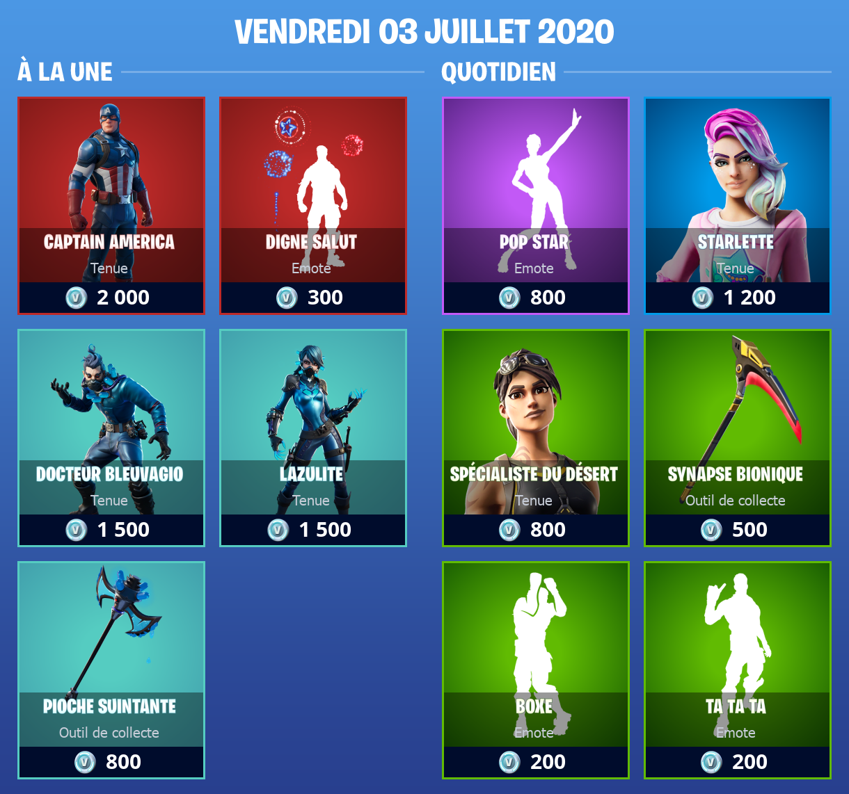 Boutique Fortnite 3 juillet 2020 avec Captain America