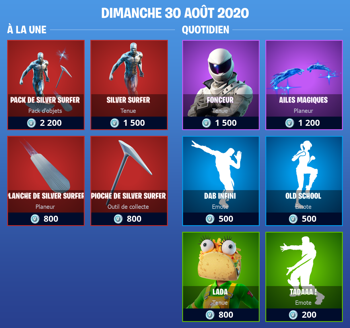 Boutique Fortnite 30 août 2020