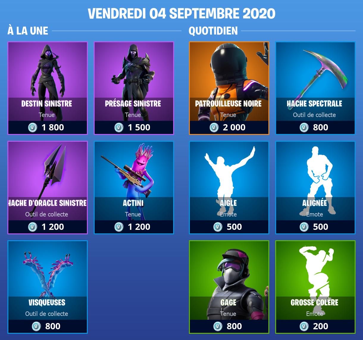 Boutique Fortnite 4 septembre 2020