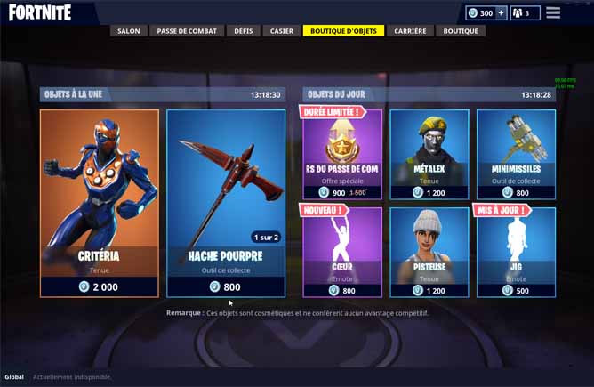 Votre boutique changera quotidiennement à 02h00, nous vous tiendrons informés de la future boutique !