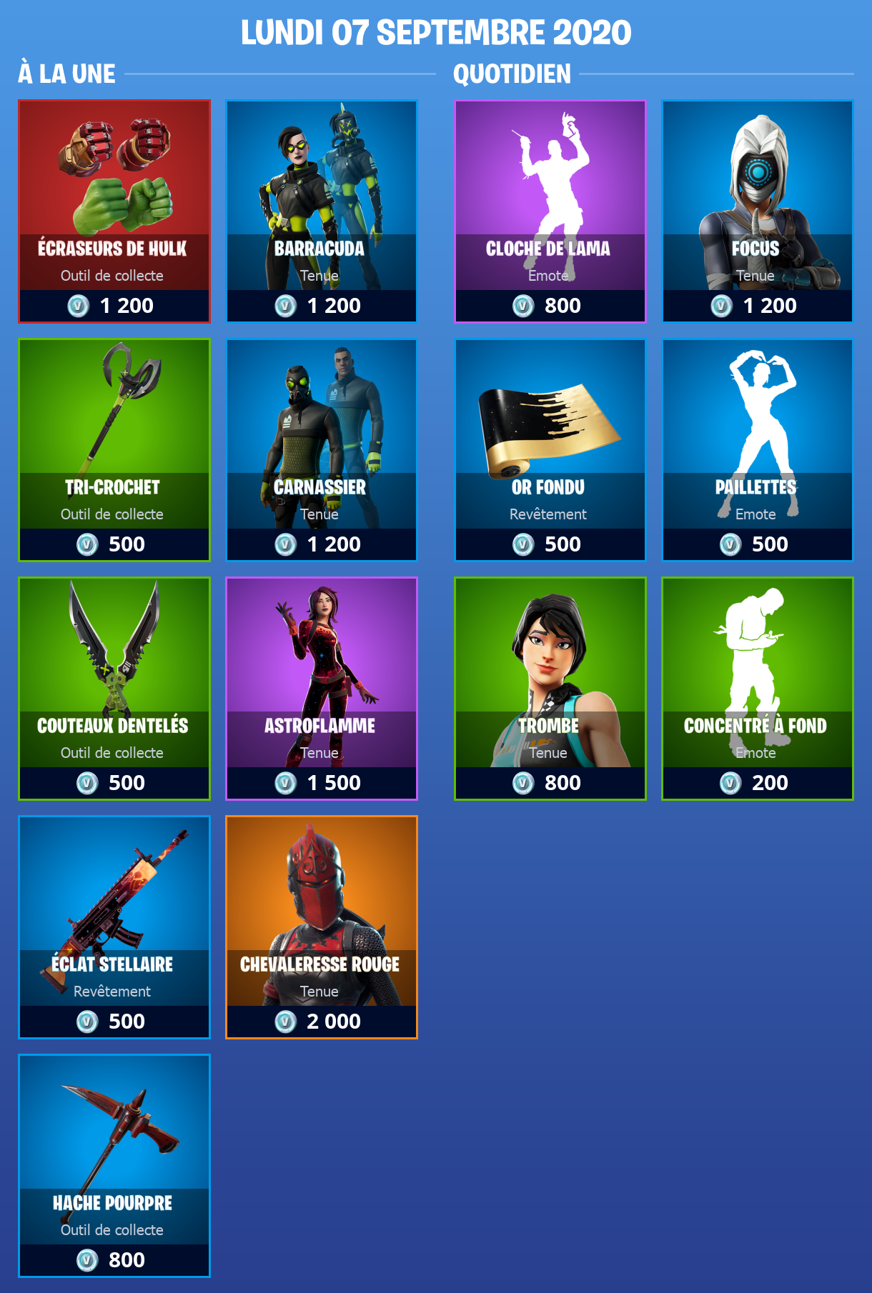 Boutique Fortnite 7 septembre 2020