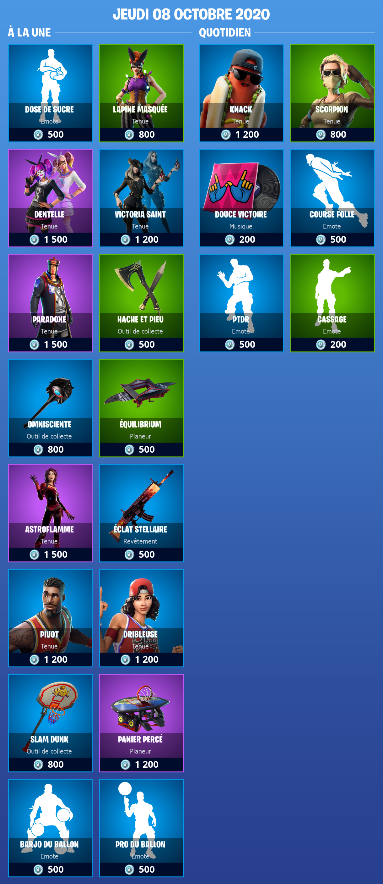 Boutique Fortnite 8 octobre 2020