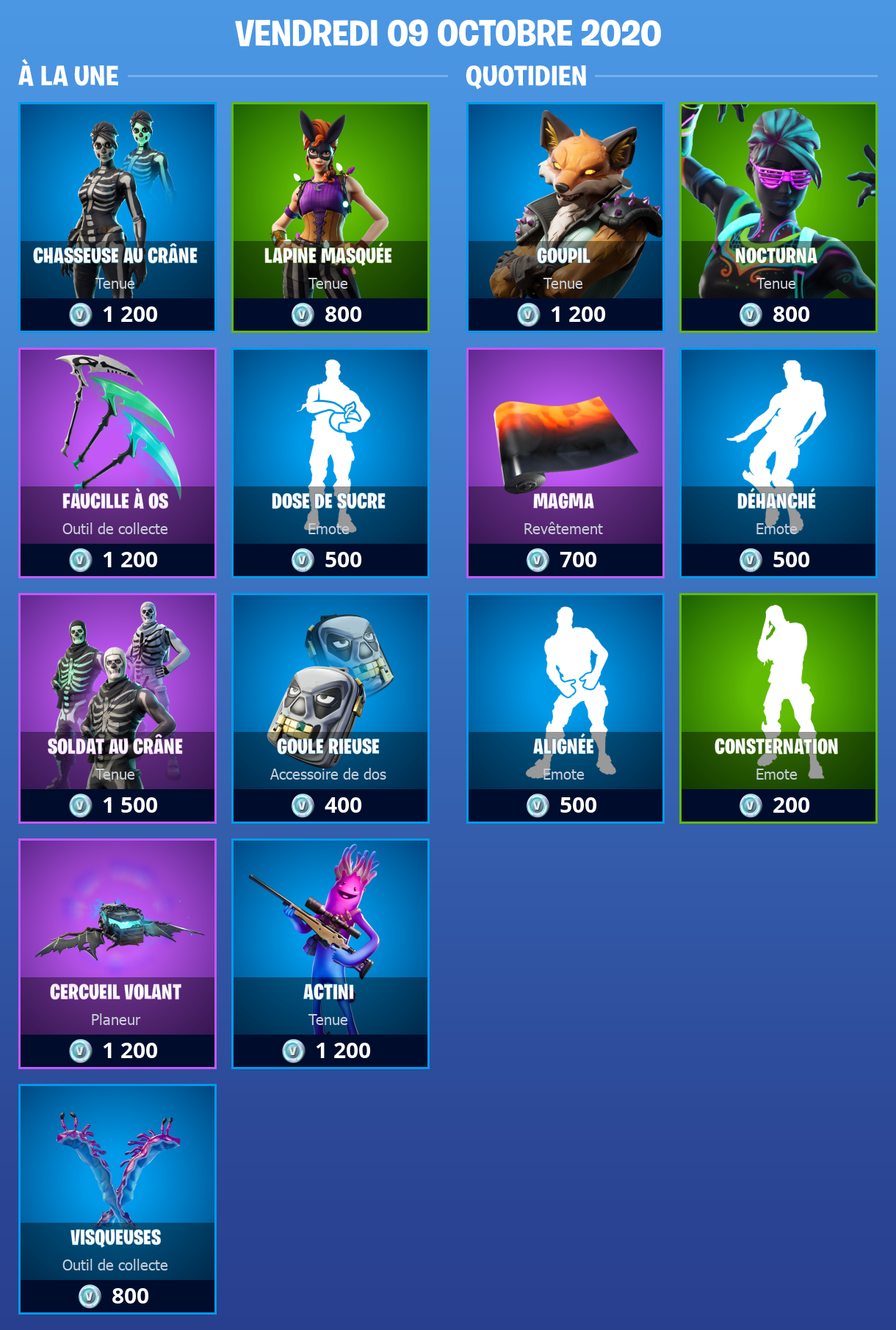 Boutique Fortnite 9 octobre 2020