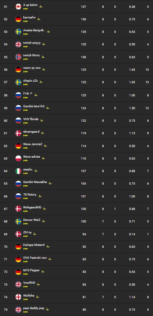 | Snayzy | Nikof | Decyptos | Popo | l0wless |