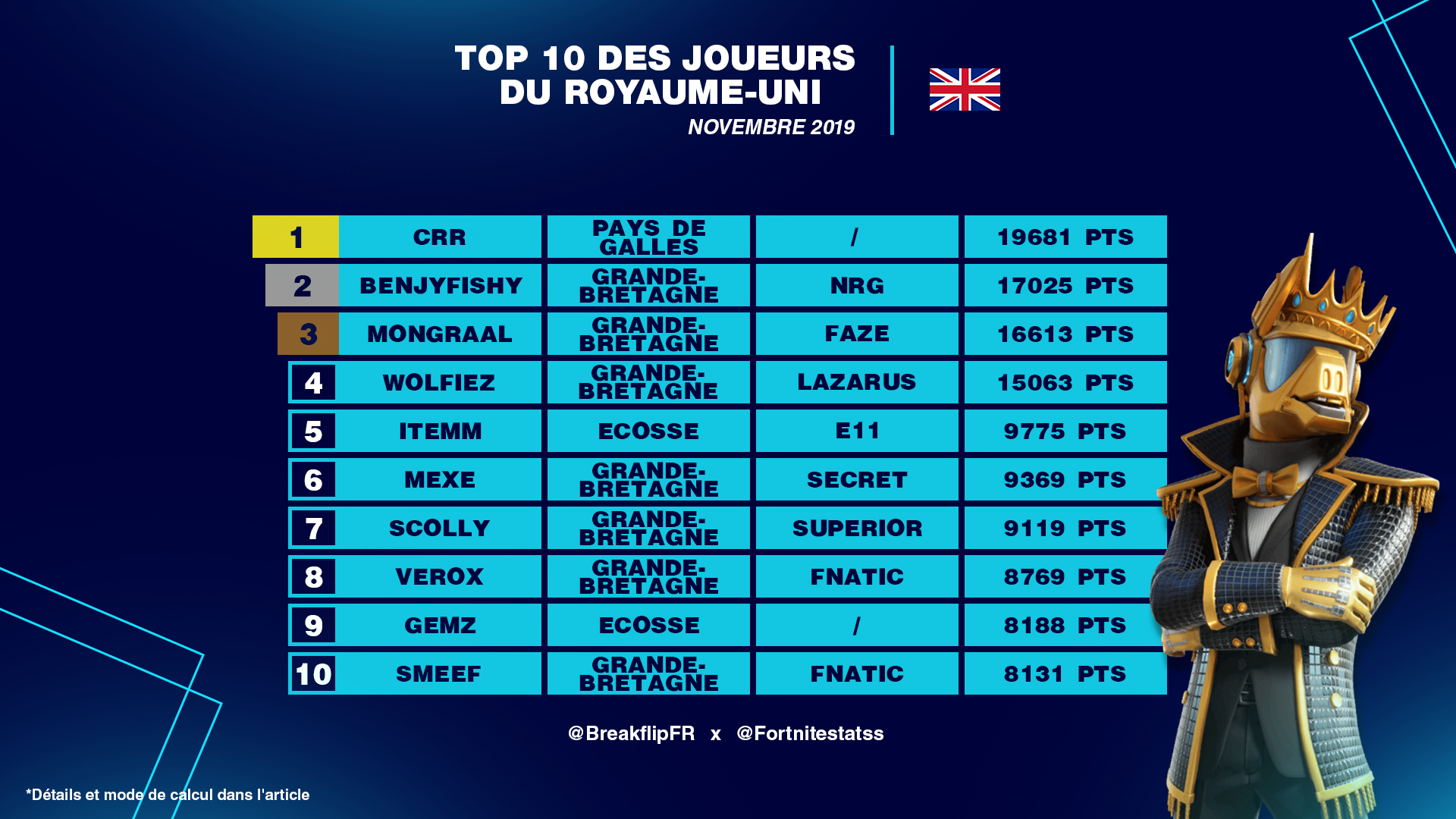 Meilleurs joueurs Fortnite britanniques de novembre et décembre
