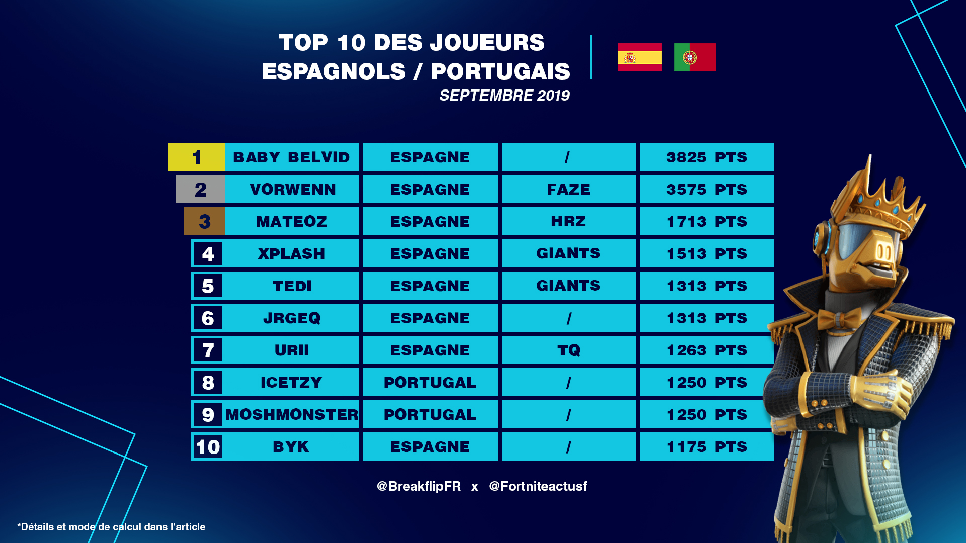 Meilleurs joueurs Fortnite espagnols et portugais de Septembre