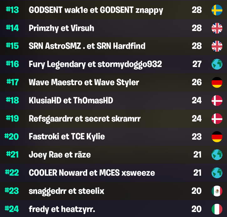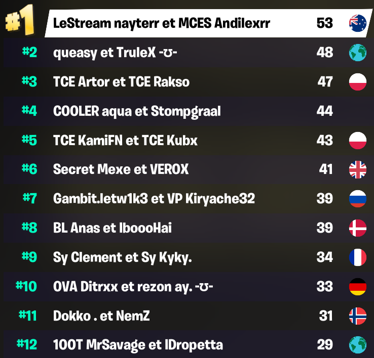 FNCS Heats : Classement et résultats de la finale Fortnite Champion Series en duo