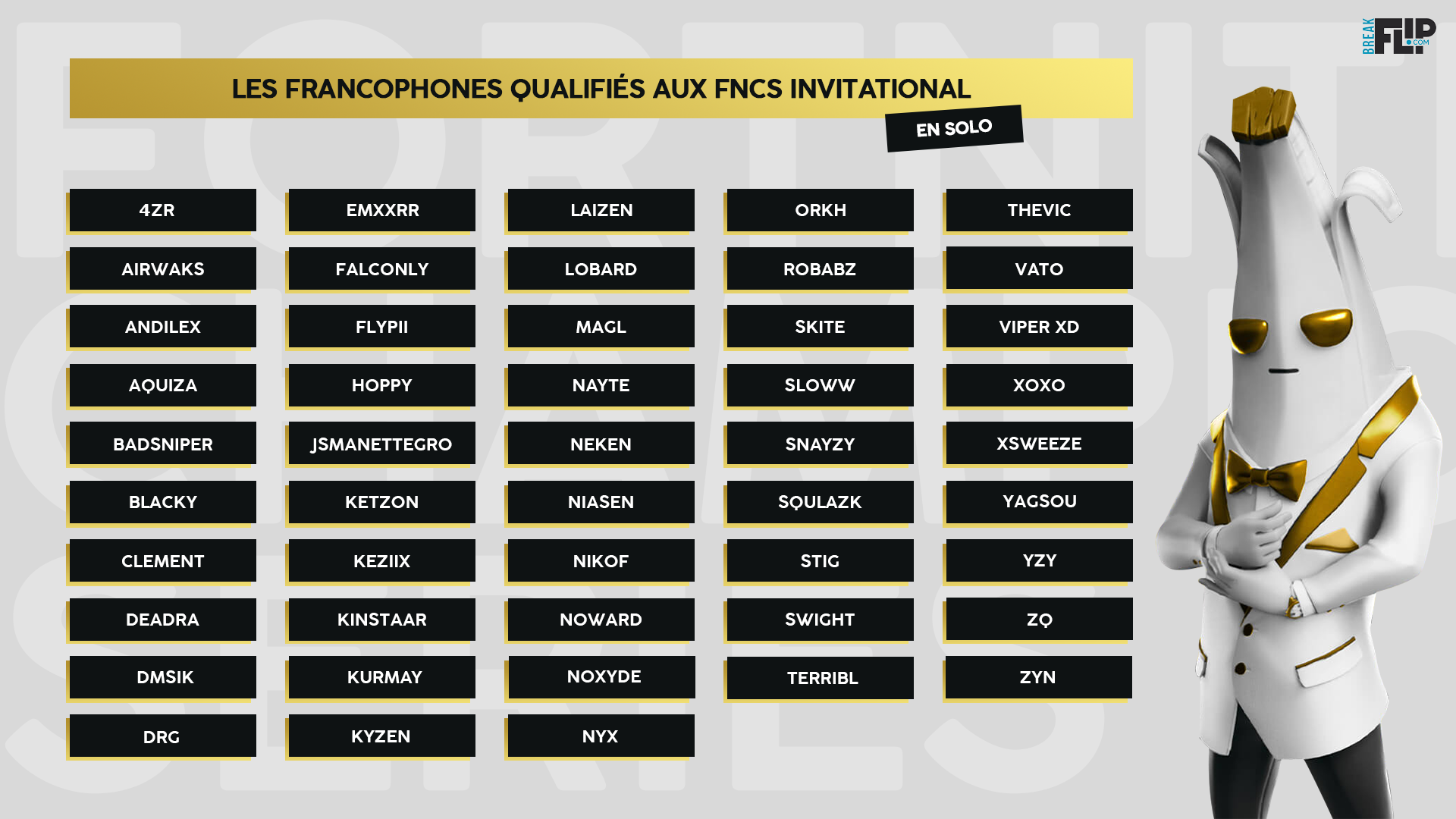 Visuel des francophones qualifiés aux FNCS Solo (Crédits : Breakflip)
