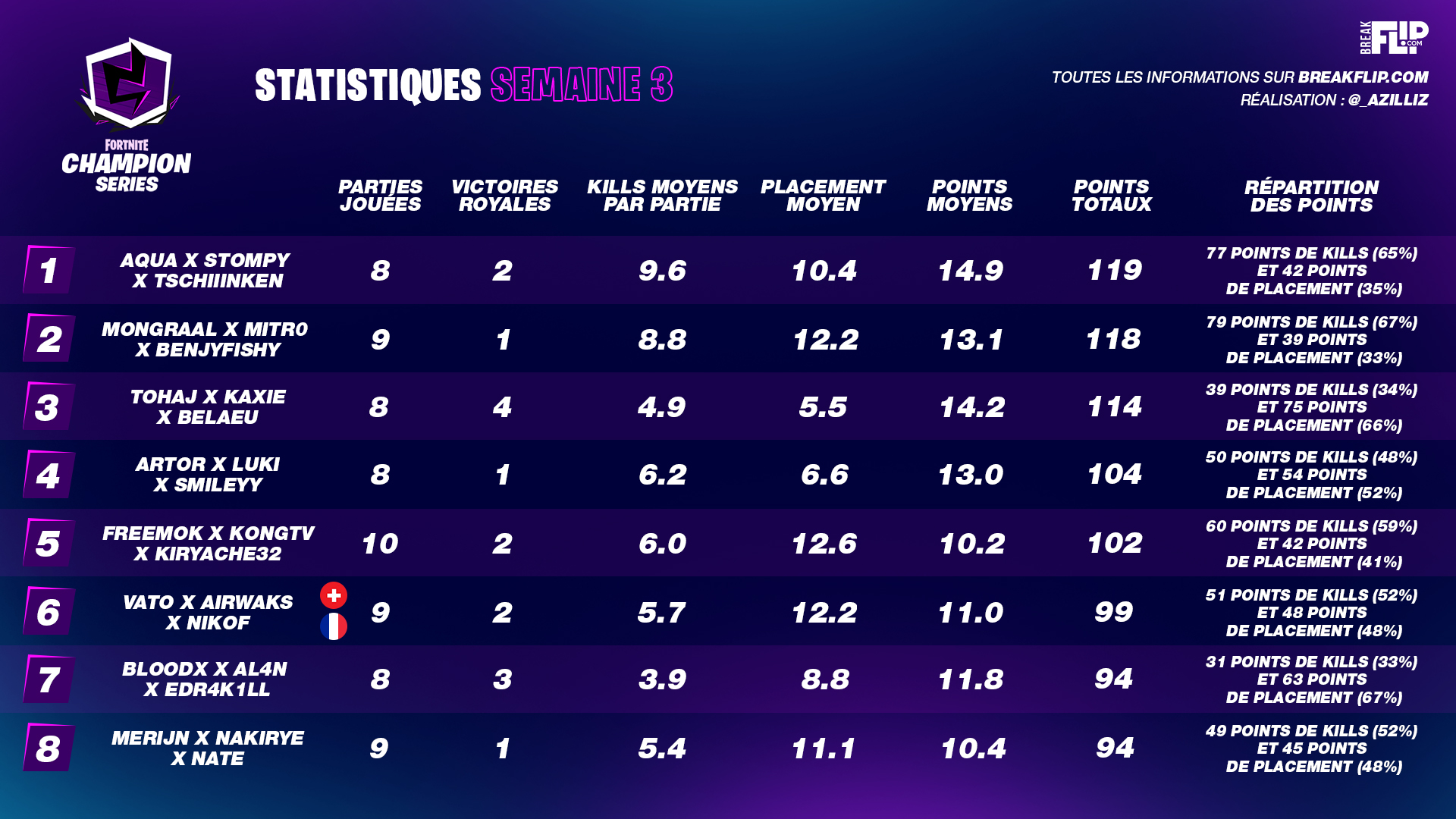 Cette semaine, le trio composé d'Airwaks, Nikof et Vato qui représentent Solary et LeStream ont terminé 6e avec 99 points !