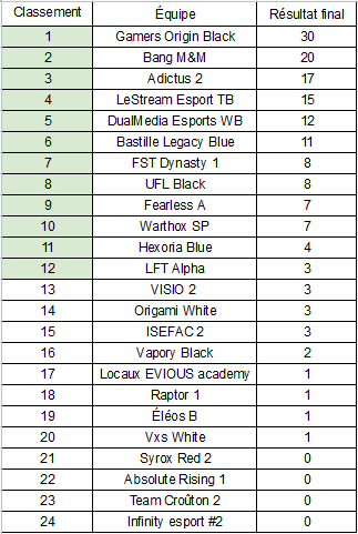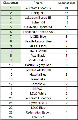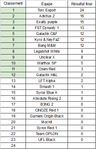 Résultats Grande Finale Pro |
