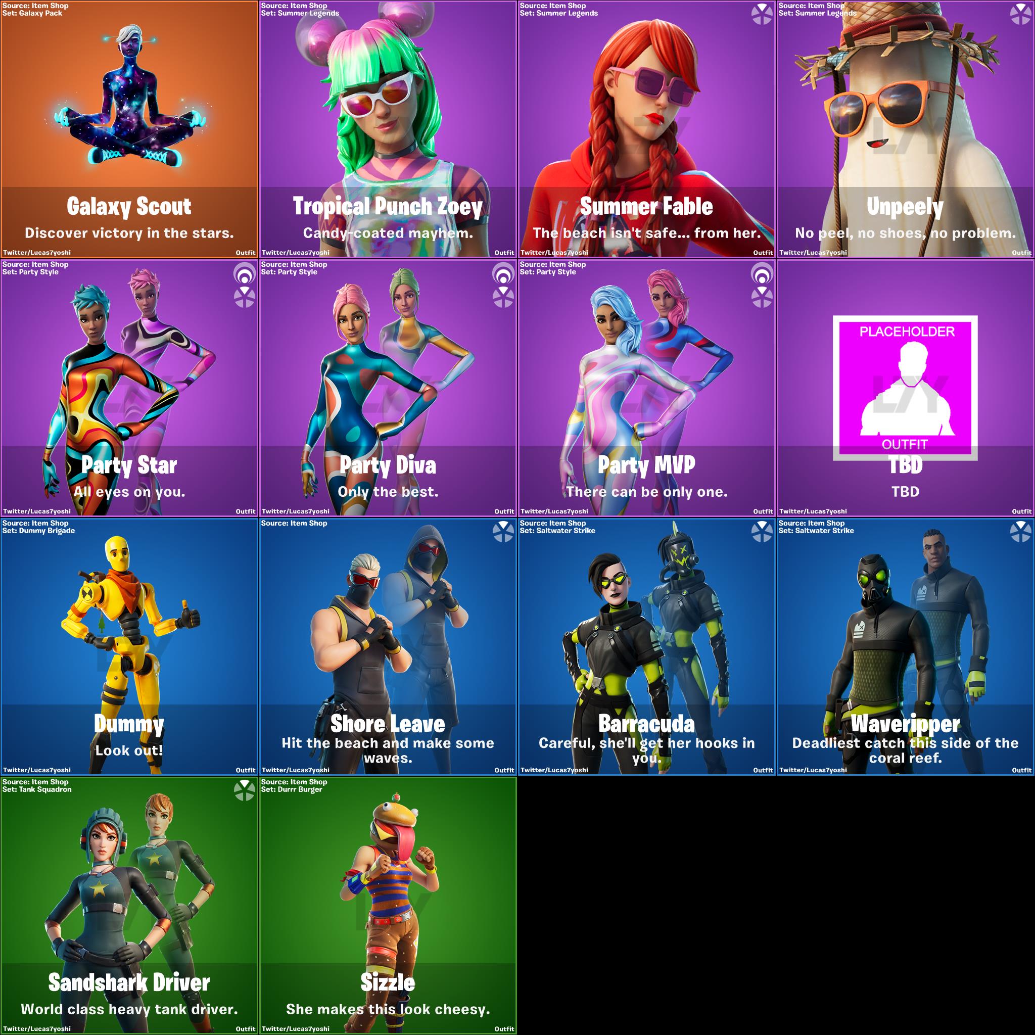 On ne sait pas quand tous ces skins sortiront mais il y a de grandes chances pour que la majorité arrive dans les dix prochains jours. Veillez au grain et pensez à regarder la boutique du jour sur Fortnite ! En attendant, voilà les skins et leurs accessoires trouvés dans les fichiers du jeu.