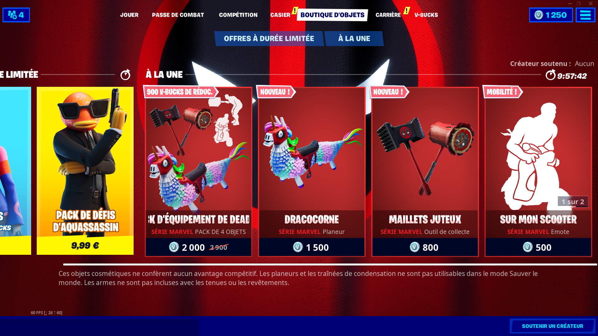 La boutique a été mise à jour à 16h, avec du contenu Deadpool :