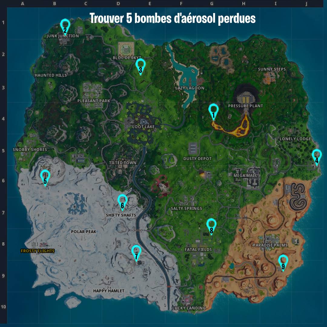 Fortnite : Trouver les bombes d'aérosol perdues, défi Plomb et Peinture, saison 10