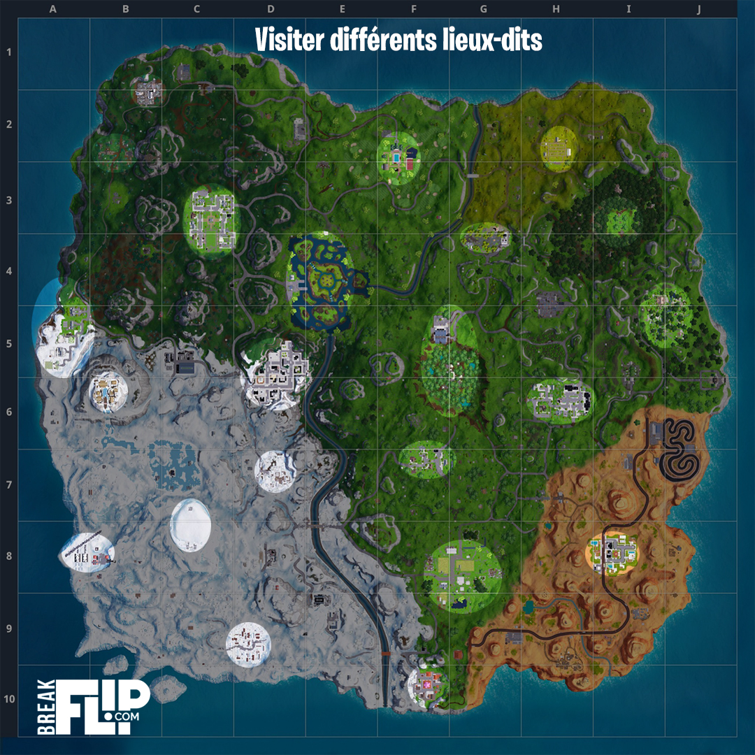 Pour les premiers défis de l'Ultime effort, Epic Games vous demande de visiter différents lieux-dits. Comment faire pour y parvenir ?