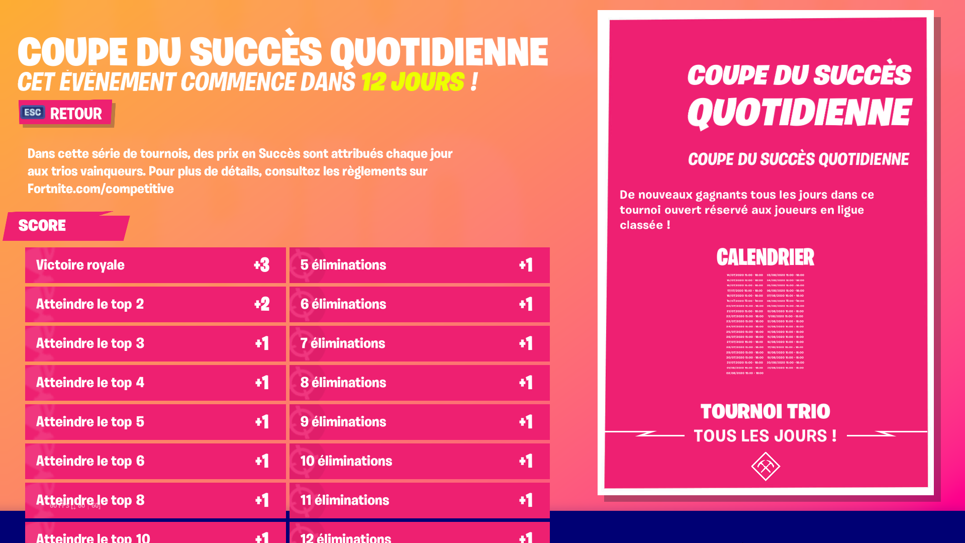 Cette compétition est quotidienne, ce qui veut dire que chaque jour, vous pourrez participer et tenter de gagner du cashprize ou des points de succès.
