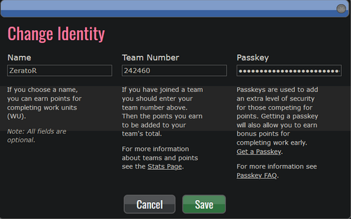 - Vous pouvez rejoindre l'équipe Z EVENT en renseignant notre numéro 242460 en cliquant sur « Change identity » ou à la première installation du logiciel