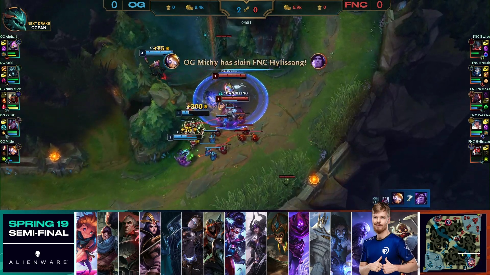 En effet, la principale force du duo Sona -Taric réside dans sa capacité à devenir de plus en plus puissant au fur et à mesure de la partie. Origen a donc fait le pari de tuer les intentions de Fnatic dans l’Åuf en sélectionnant des champions très agressifs dès le début de la partie avec notamment un pick de Blitzcrank très gênant pour la botlane Rekkles – Hylissang. Le pick Kennen côté OG a également affirmé l’intention de terminer cette partie très rapidement.