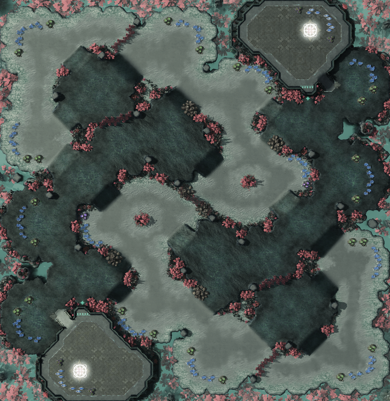Quelques mots de Marras créateur de la carte : « Cette carte possède 16 bases avec du minerai classique, dont deux disposent d’un geyser riche de gaz vespène. La distance d’attaque éclair moyenne est de 37 secondes. Des rochers obstruent le chemin central ainsi que la rampe menant à la troisième base en zone basse. Des bloqueurs de ligne de vue sont situés sur les positions nord-nord-ouest et sud-sud-est du contour extérieur de la carte, sur les zones surélevées près du contour extérieur, et au centre. Enfin, les bases principales ne sont pas directement excentrées. »