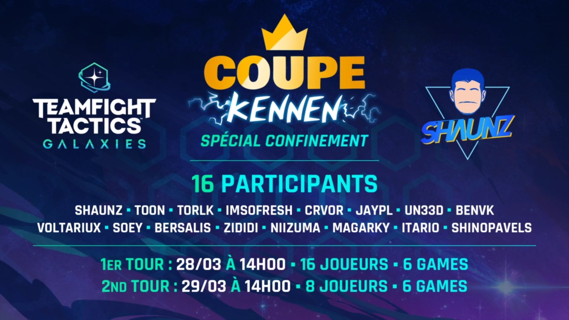 En plein confinement, rien de mieux qu'une Coupe Kennen sur TFT ! Shaunz continue de proposer son tournoi avec, comme toujours, 16 streamers qui vont s'affronter.
