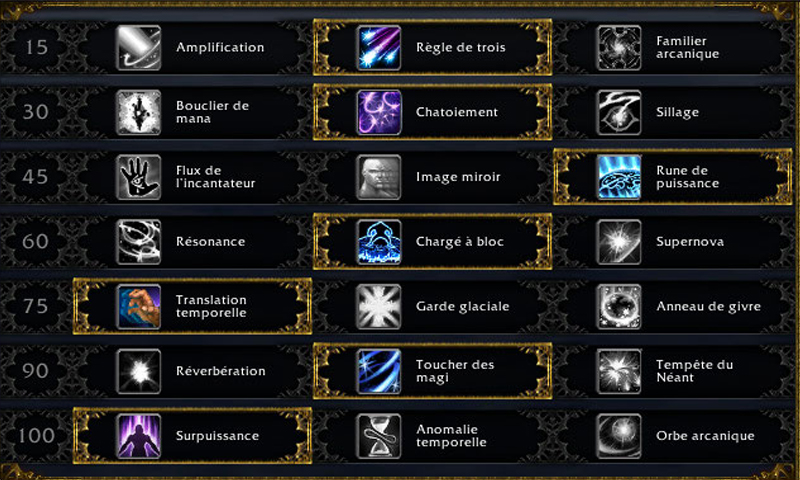 Multi-cibles : Chargé à bloc > Orbe arcanique > Tempête du néant > Déflagration des arcanes > Rune de puissance > Pouvoir des arcanes > Présence spirituelle > Barrage des arcanes > Projectiles des arcanes > Déflagration des arcanes > Évocation (quand plus de mana)