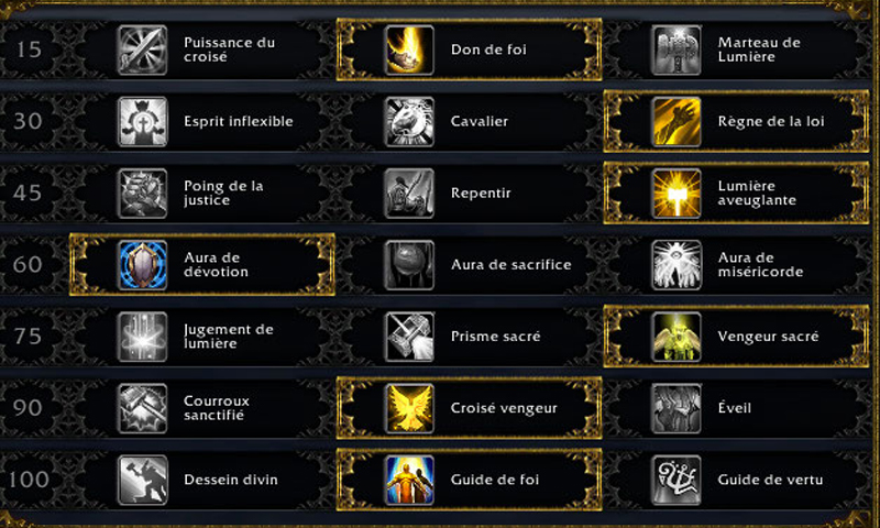 Le Paladin Sacré est un Heal qui a voué sa vie à défendre la cause de la lumière, lui offrant ainsi la possibilité d'utiliser cette puissance à son avantage. Très agressif et n'hésitant pas à prendre des risques, ce paladin n'hésite pas à sacrifier un peu de sa vitalité pour ses alliés.