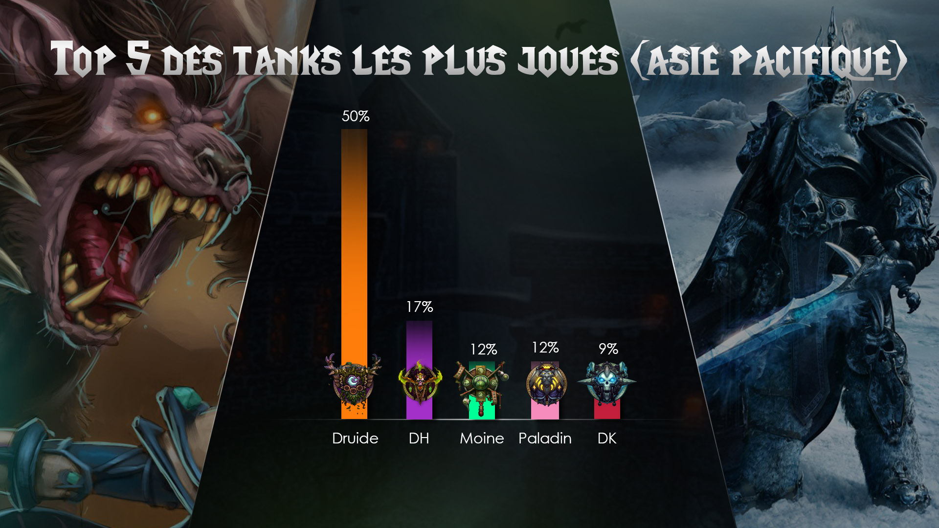 Le Chevalier de la mort Sang et le Druide Gardien ont été largement les choix préférés des joueurs. Et pour cause, ces deux classes disposent de caractéristiques décisives en donjons mythiques : une survie importante, l'un par son soin et l'autre par ses résistances, et surtout d'une résurection en combat. Les compositions chinoises disposant davantage de corps-à-corps, il est possible que les équipes aient choisi de partir sur un Chevalier de la mort dans le rôle de Tank grâce à son sort Emprise de Fielsang. Ce sort permet de ramener tous les ennemis au même endroit, utile dans des compositions avec de nombreux corps-à-corps pour l'AoE.