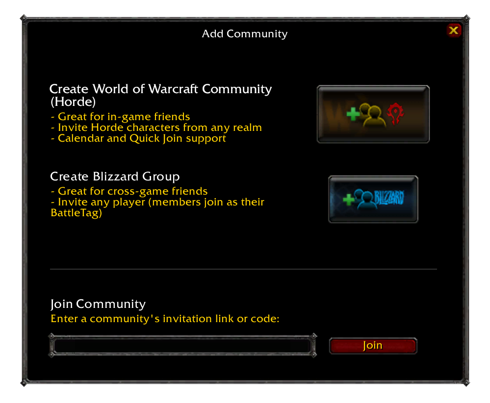 Après avoir apporté de nombreuses modifications aux fonctions sociales de l'application Battle.net, Blizzard s'attaque aujourd'hui à World of Warcraft. C'est via le site officiel que les créateurs du jeu ont dévoilé une fonction permettant de créer et gérer une communauté via l'onglet Guildes et communautés directement en jeu, au lieu d'avoir à passer par Battle.net. Ces communautés seront différentes des guildes, et un joueur pourra appartenir à plusieurs communautés ainsi qu'à une guilde en même temps. Blizzard a également annoncé que ces nouvelles fonctionnalités arriveront avec le pré-patch de Battle for Azeroth.