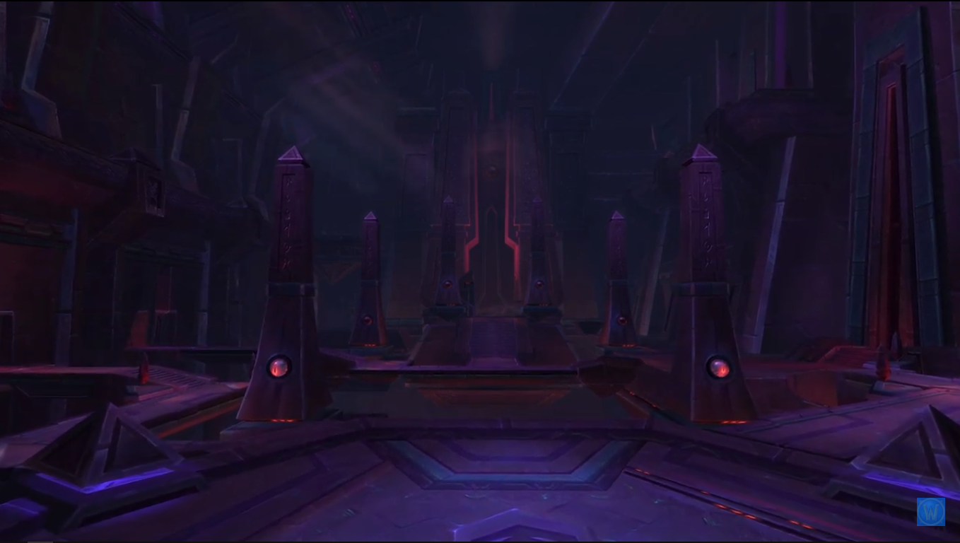 La cité des DTA sera le cÅur de la bataille finale de l'extension. On y retrouve quelques têtes connues comme Irion (qui a succombé aux murmures), Ilgynoth Azshara, qui ne semble pas être un boss du raid mais qui sera présente enchaînée dans une salle et bien entendu, le boss final, N'Zoth lui-même.