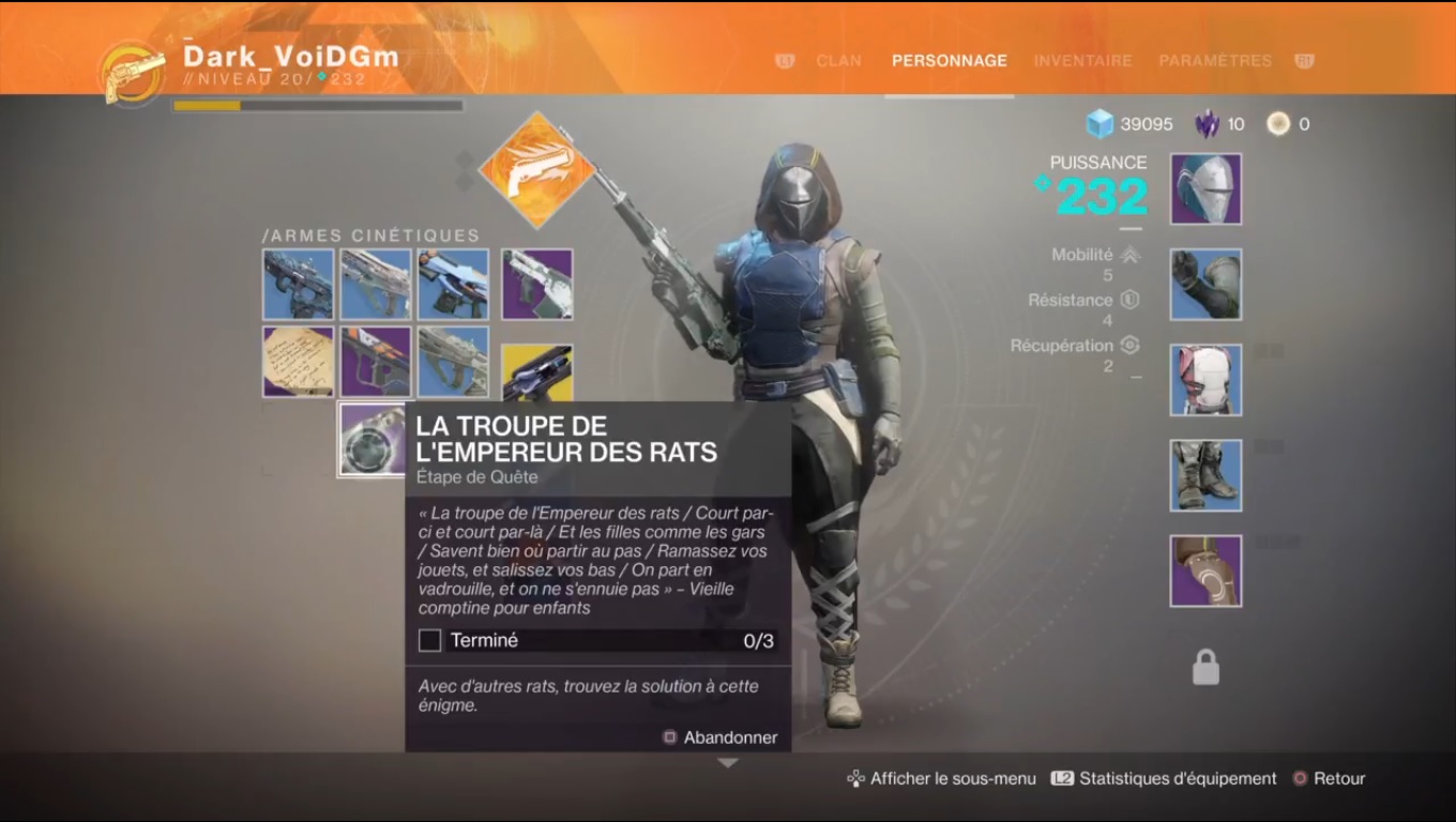 Dans Destiny 2, trois armes exotiques peuvent être obtenues grâce à des quêtes, nous allons vous détailler comment obtenir l'Empereur des Rats, le pistolet exotique.