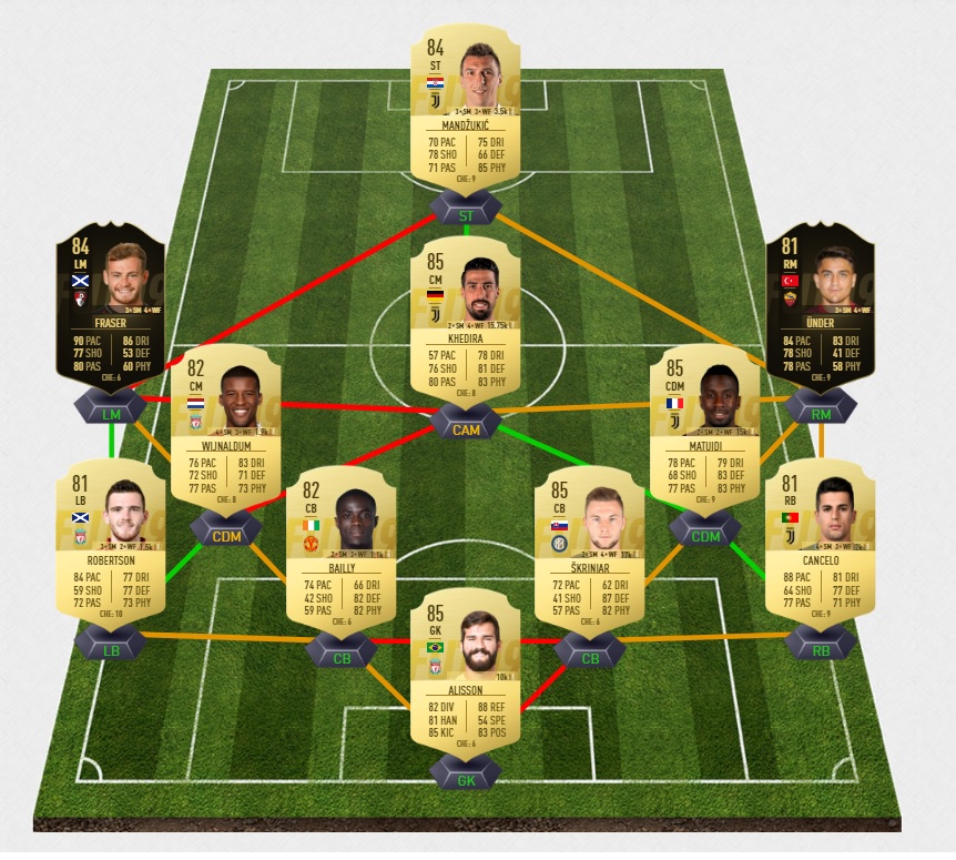 A noter que ces formations sont des exemples de solution et qu’il est tout à fait possible de réussir le défi avec une toute autre équipe. A noter également que le coût des cartes est à prendre en compte et qu’avec le temps, celui-ci pourrait augmenter ou baisser, rendant le onze plus ou moins optimal.