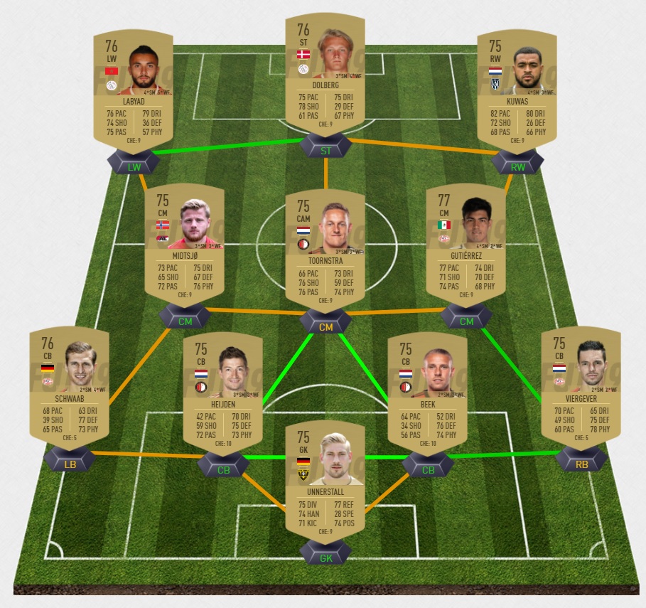 A noter que ces formations sont des exemples de solutions et qu’il est tout à fait possible de réussir le défi avec une toute autre équipe. A noter également que le coût des cartes est à prendre en compte et qu’avec le temps, celui-ci pourrait augmenter ou baisser, rendant le onze plus ou moins optimal.