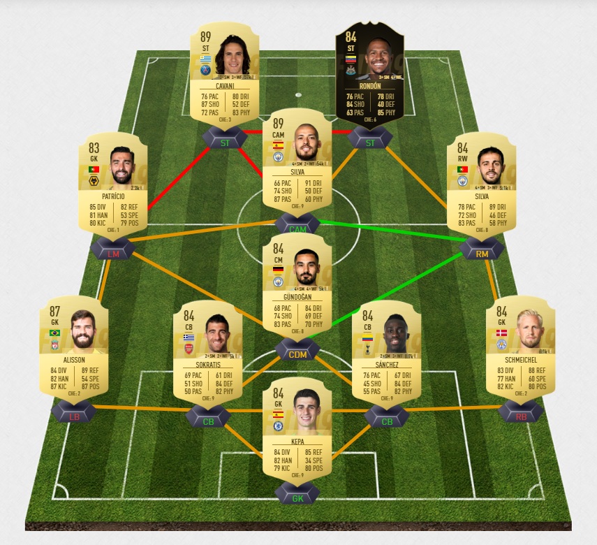 Notre exemple de solution pour le défi Equipe notée 84 (via le créateur Futhead)