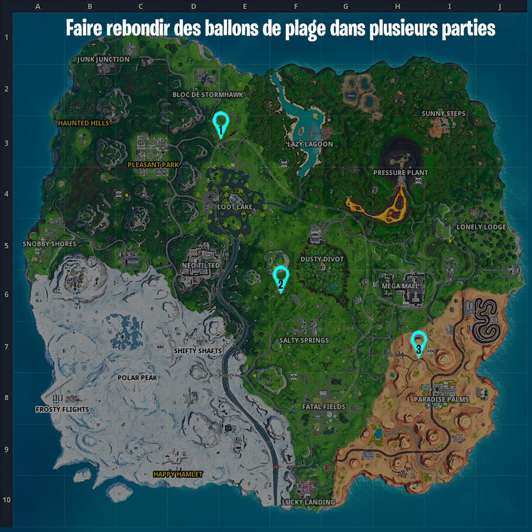 Les ballons décoratifs se trouvent aux différentes fêtes de plage situées à plusieurs endroits de la carte. Vous pouvez d'ailleurs retrouver l'emplacement de ces fêtes dans notre précédent article. Pour les faire éclater, rien de plus simple, il vous suffit de donner un coup dedans, soit à leur corps-à-corps avec la pioche, soit à distance avec une arme à feu.