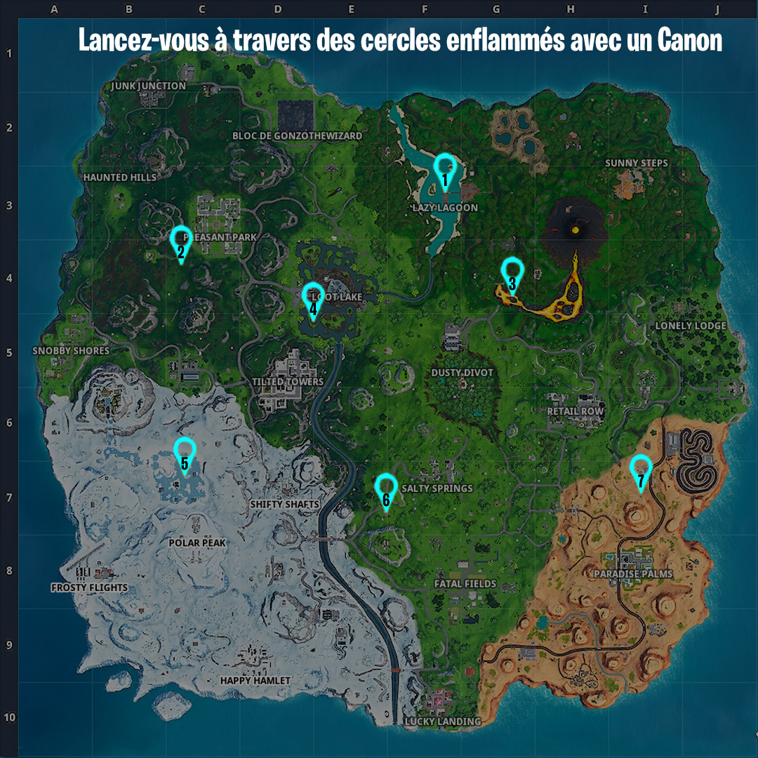Fortnite : Traverser les cercles enflammés en étant propulsé depuis un Canon, défi semaine 10 saison 8