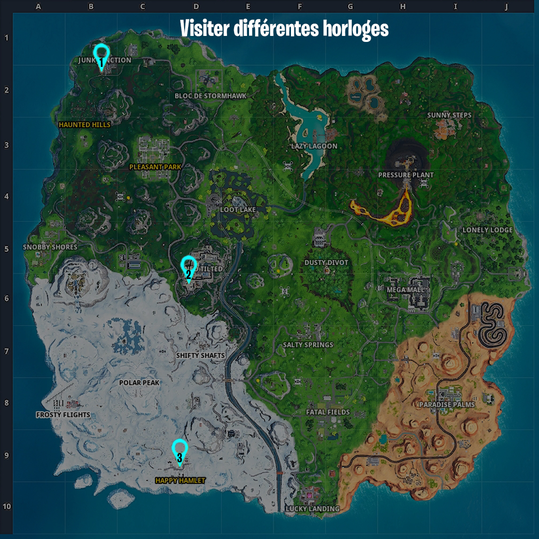 Fortnite : Visiter différentes horloges, défi semaine 8 saison 9