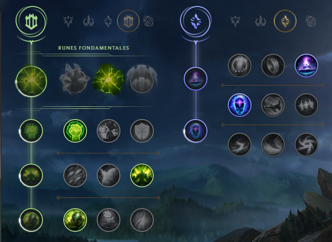 L’enchantement : Titan cendré permet d'accélérer le clear d’Amumu ainsi que ses dégâts en combat. De plus, l’item gagne en efficacité grâce au passif de la Momie mélancolique. Le Masque abyssal est efficace sur Amumu car dans un premier temps il augmente ses dégâts magiques (et potentiellement ceux de ses alliés) mais également cela lui permet de récupérer du mana en subissant des dommages et de la vie en laissant Désespoir (Z) activé Le Lithoplastron de gargouille permet quant à lui de réaliser des actions offensives avant de passer en phase défensive et de temporiser sans prendre trop de risques. |