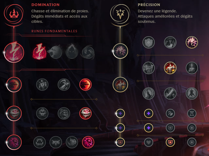 Le Manteau de la nuit peut être utile si vous souhaitez tuer les champions fragiles encore plus rapidement avec de la létalité et pour éviter des contrôles importants grâce au bouclier. La Gueule de Malmortius est quant à elle une option intéressante si vous êtes mis en danger par de nombreux dégâts magiques. |