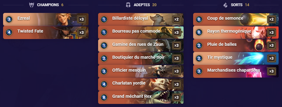 Ezreal est toujours aussi pertinent comme condition de victoire. Avec beaucoup de pioche pour monter de niveau Twisted Fate, mais également pour aller chercher vos pièces de combo, Ezreal peut aller attaquer directement le Nexus adverse en fin de partie si vous prenez le temps de le passer au niveau supérieur. Ce deck dispose également de beaucoup de créatures de début de partie, lui permettant de tenir la cadence face à des decks plus agressifs.