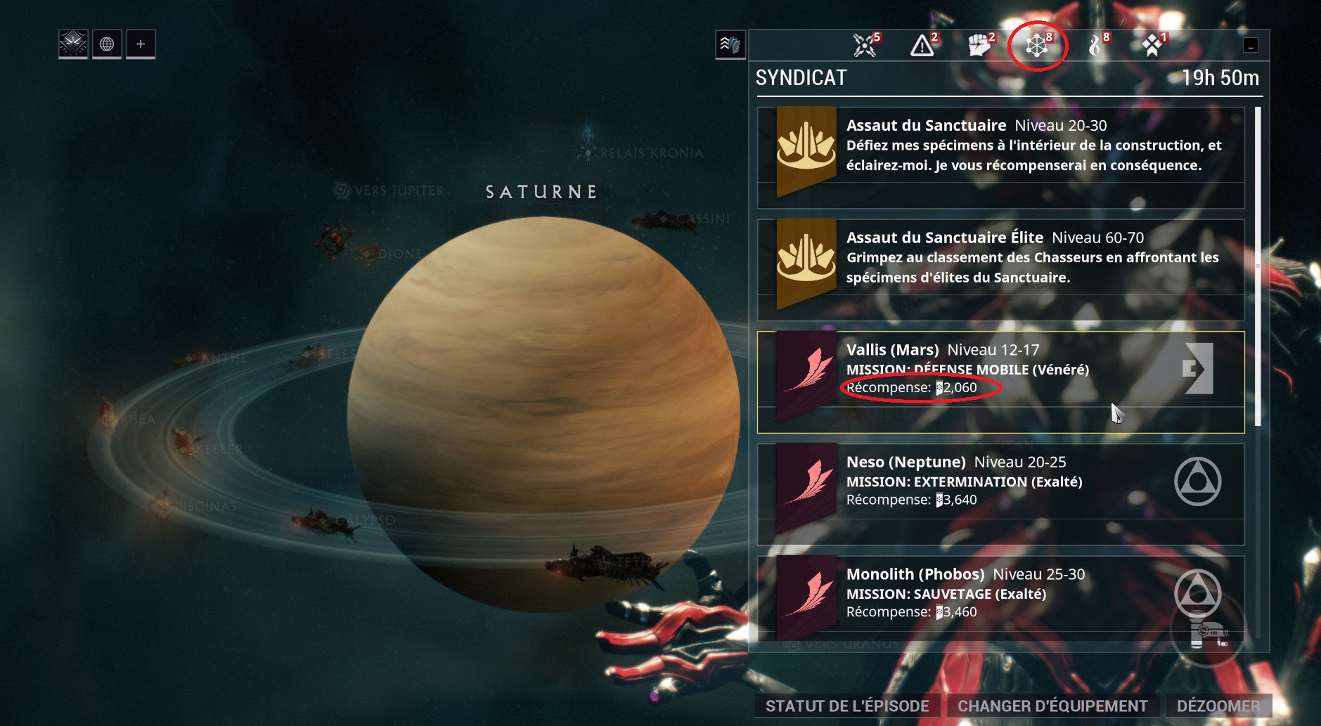 Outre les sceaux que vous pouvez mettre sur votre warframe, il existe également des alertes de syndicats. Ces missions vous récompenseront avec un gain de réputation très important.