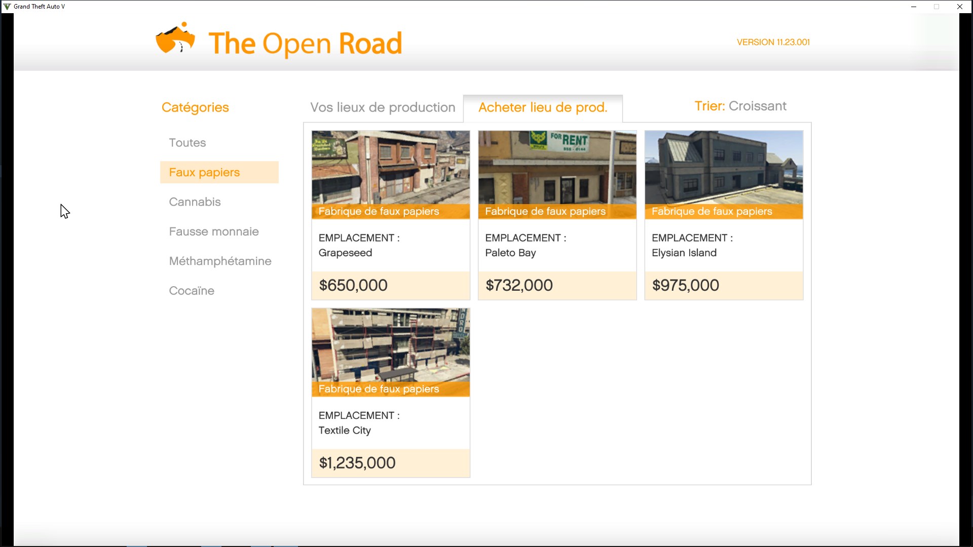 La frabrique de faux papiers est le lieu de production le plus abordable. Bien qu'il ne soit pas le plus rentable il peut être intéressant pour ceux qui commencent avec un petit budget.