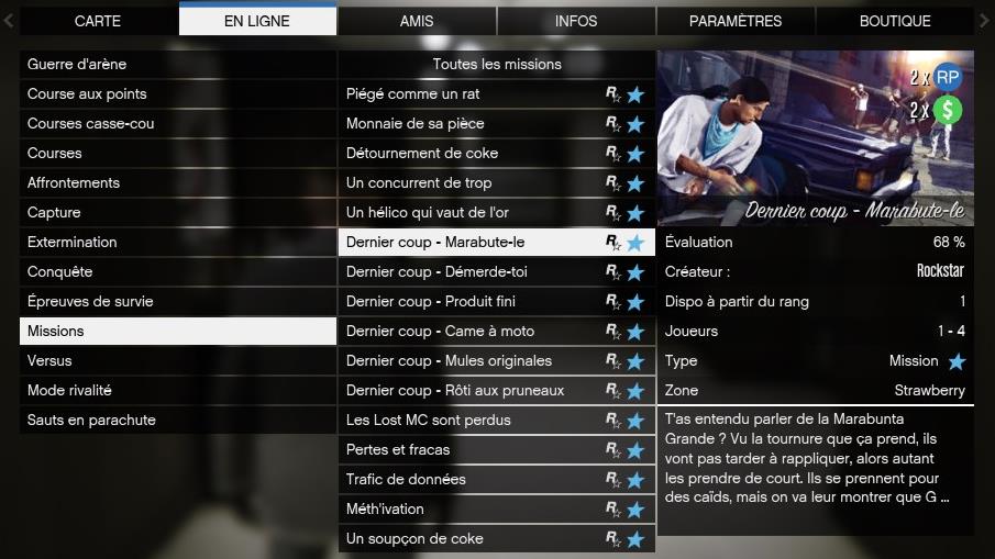 Lorsque vous aurez accompli une de ces missions, vous recevrez des RP, des JP (points de boulot) et des GTA$.